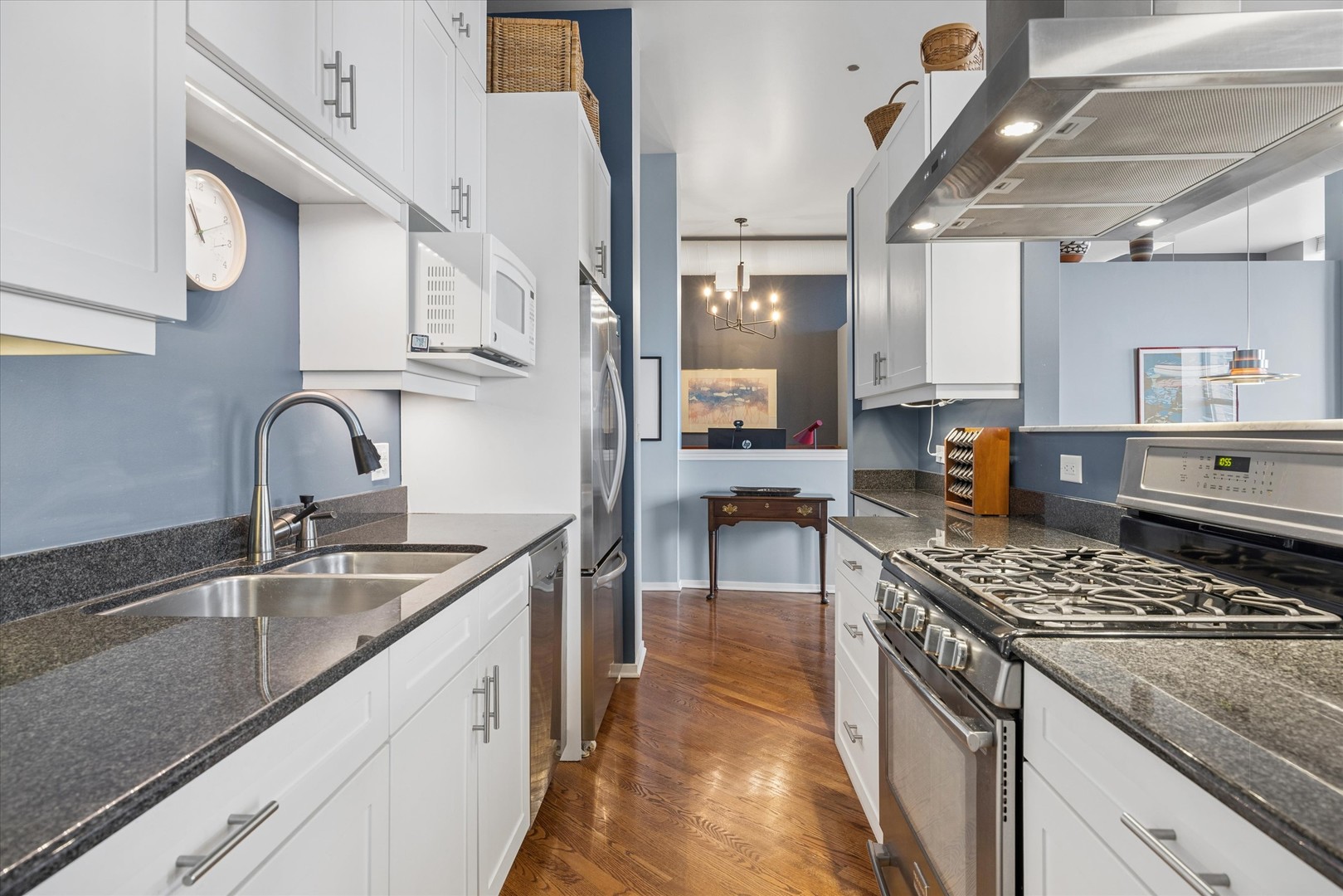 Set along iconic Michigan Avenue in the historic Michigan Avenue Lofts, this spacious 2 bed, 2 bath plus den residence offers dramatic scale and incredible natural light with eastern exposures overlooking Grant Park. Soaring 11 foot ceilings and massive windows flood the home with sunlight throughout the day. The mostly open concept layout is thoughtfully designed with partial walls that define separate living areas while still maintaining a connected flow between the living and dining spaces. The flexibility of the layout is a standout feature. One area currently serves as a music and reading space, while the den comfortably accommodates two desks for a true work from home setup. These spaces can easily function as a library, office, workout area, creative studio or third bedroom depending on your needs. The living room is anchored by a gas fireplace and opens to a kitchen with quartz countertops, stainless steel appliances, oven range that vents outside and long rows of kitchen shelving providing generous storage. Hardwood floors run throughout the main living areas, while both bedrooms feature carpeting. The split bedroom layout offers privacy, with a spacious primary suite that includes a large walk in closet and a beautifully renovated bathroom with double vanity, Brizo fixtures, and expansive walk in shower. The second bedroom sits adjacent to the den and living space and is partially open, offering flexibility for guests or additional workspace. Additional features include a full laundry room with sink, stackable washer dryer, ceiling fans and extra storage. One garage parking space and a storage locker are included. Michigan Avenue Lofts offers a full service experience with a welcoming lobby and doorman, business center and library, fitness center, dance and yoga studio, and on site dry cleaning. Perfectly positioned across from Grant Park and just moments from the Lakefront Trail, Museum Campus, Shedd Aquarium, Adler Planetarium, and Soldier Field, this home offers the rare combination of dramatic loft living and one of Chicago's most iconic locations.